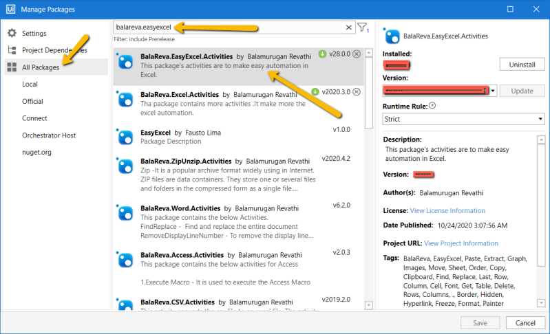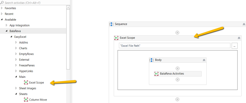 This excel package contains more activities (components). The activities are having one or more output(s). It helps you to reduce the development time. It is very easy to use it. It manipulates the data very fast. All the activity will work inside the Excel scope activity from BalaReva. It interacts with excel sheet ,workbook and excel file. Event can able to create new workbook.